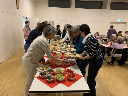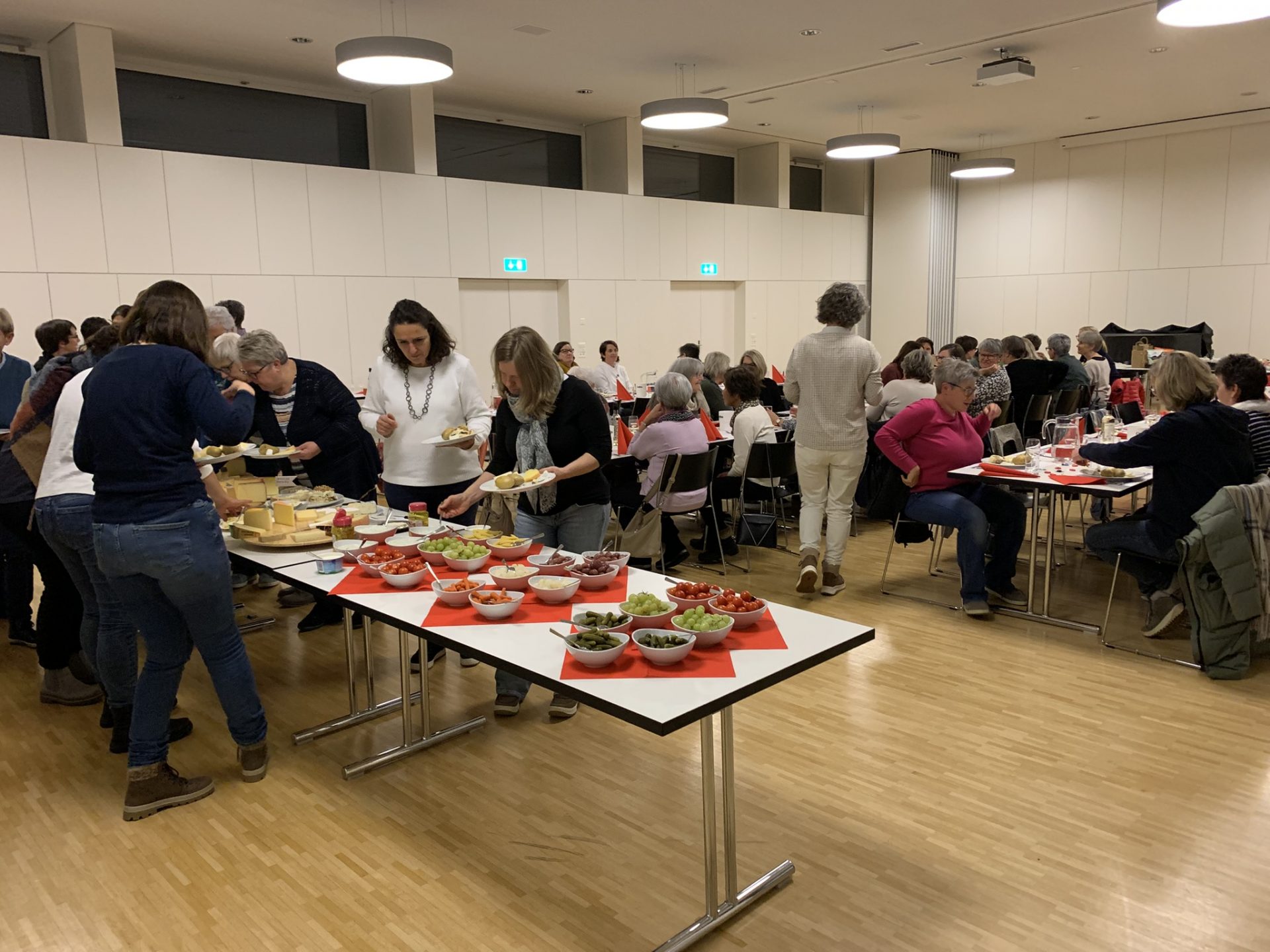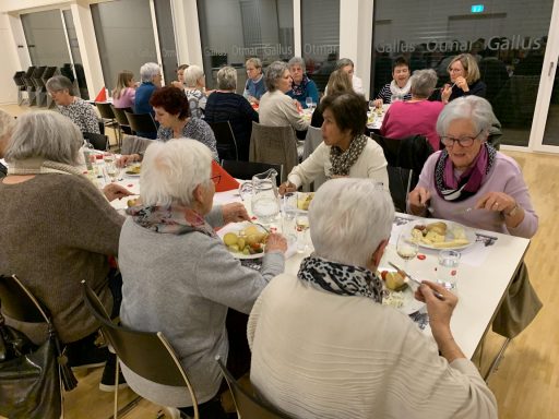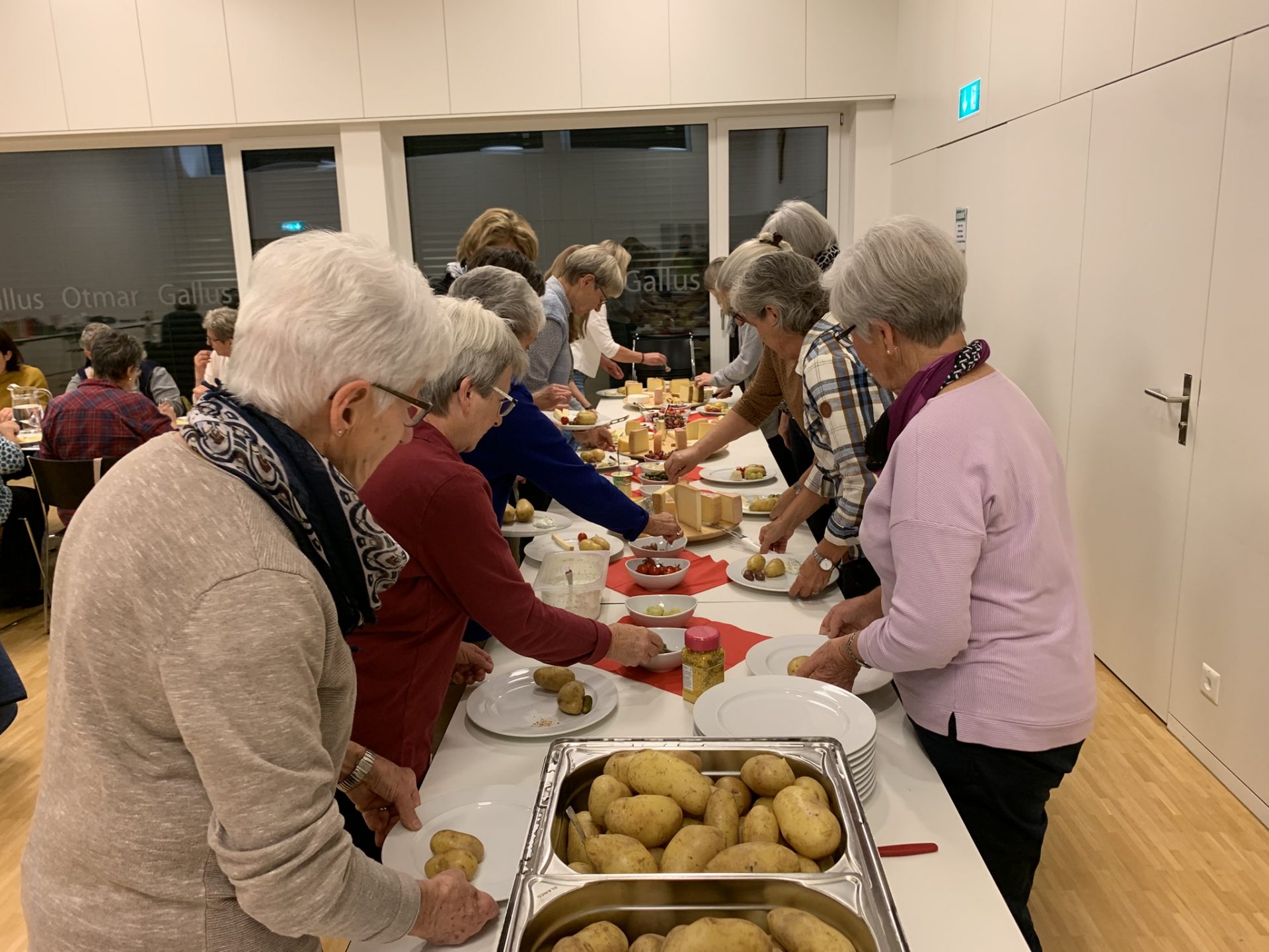 Bereits zum dritten Mal in Folge fand der beliebte Gschwellti-Abend mit Lotto im Otmarzentrum statt. Rund 60 Frauen nahmen daran teil und brachten jeweils ihren Lieblingskäse mit, sodass ein abwechslungsreiches und reichhaltiges Buffet entstand. In gemütlicher Atmosphäre wurde gegessen, gelacht und zahlreiche Gespräche geführt. Anschliessend stand der spielerische Teil des Abends auf dem Programm: Drei Runden Lotto sorgten für Spannung und gute Laune. Mit jeder gezogenen Zahl stieg die Erwartung, einen der verschiedenen Preise zu gewinnen. Der Anlass war wiederum ein voller Erfolg und steht auch im nächsten Jahr wieder auf dem Programm.