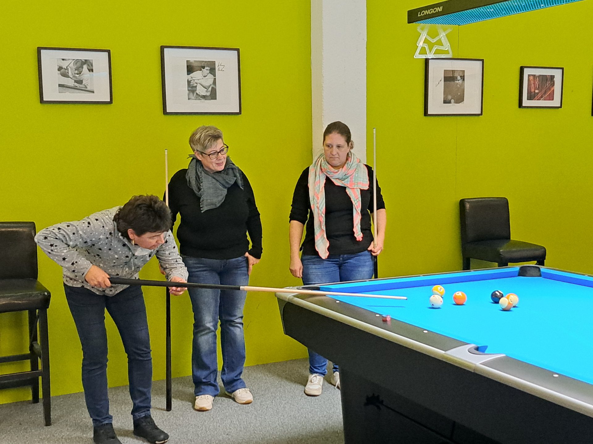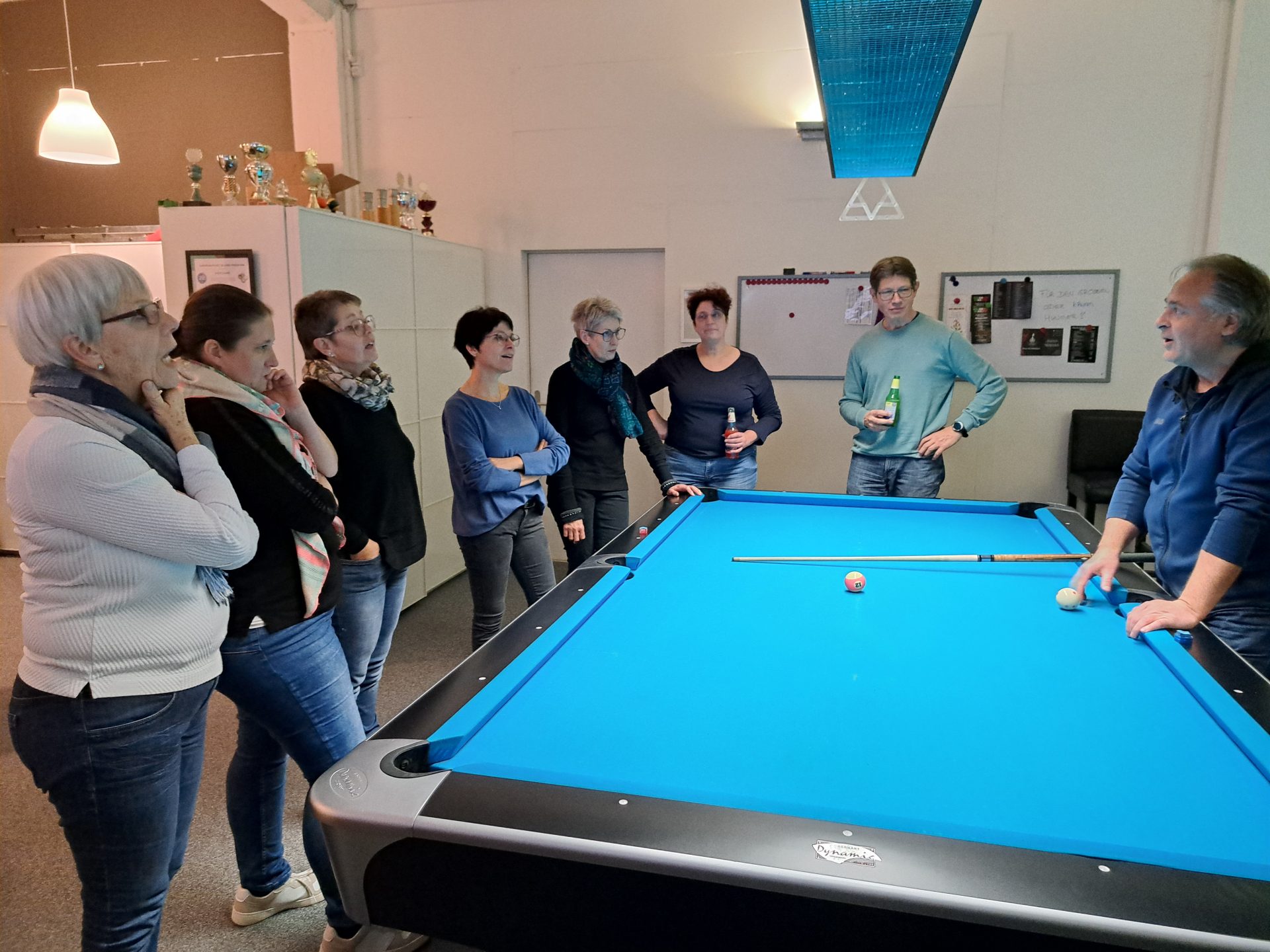 Dieses Jahr übten wir uns im Billardspiel. Das Clublokal der Black Bears Billard in Gossau bietet sich da als perfekter Ort an. Drei Profis begleiteten uns durch den Abend und standen uns mit Erklärungen und nützlichen Tipps zur Seite. Wir waren gefordert und lernten sehr viel. Es herrschte eine sehr gute Stimmung, es wurde studiert, gestaunt, gelacht und natürlich auch angestossen. Für die eine oder andere Frau war es sicherlich nicht das letzte Mal, dass sie mit Queue und Billardkreide hantierte.