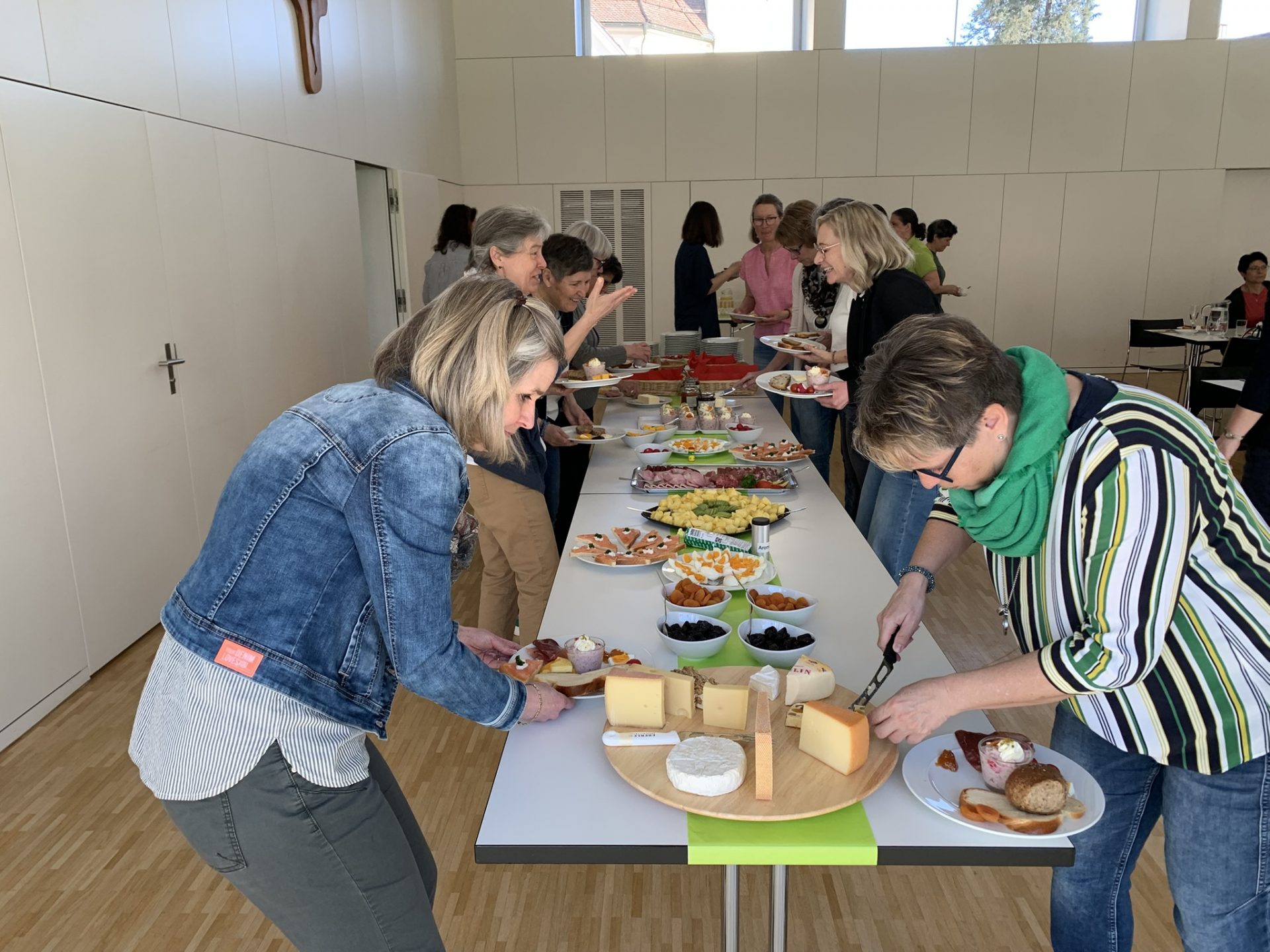 Das alljährliche Frauenfrühstück fand auch in diesem Jahr regen Anklang. Mehr als 30 Frauen haben sich Zeit genommen, um im Otmarzentrum gemeinsam den Samstagmorgen zu verbringen. Nebst dem feinen, reichhaltigen Buffet gab es ausreichend Gelegenheit für Gespräche und Diskussionen sowie für den Austausch von Gedanken und Ideen. Das anschliessende spannende und auch tiefgründige Referat von Frau Sibylle Stör (www.freudeleicht.ch) mit dem Thema „Humorvoll – das andere Positiv“ lieferte weiteren Input: Unsere vielfältig, allgegenwärtig und oft unterschätzte Humorfähigkeit bereichere unseren Alltag, entlaste und eröffne neue Möglichkeiten. Es wurde aufgezeigt, wie wir Alltagssituationen leichter und auf humorvolle Art und Weise begegnen können. Gestärkt, inspiriert, mit vielen Ideen und einem Lächeln im Gesicht durften wir nach Hause kehren.