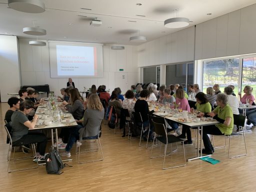 Rund 40 Frauen gönnten sich eine Auszeit und liessen sich mit einem reichhaltigen Frühstücksbuffet im Otmarzentrum verwöhnen. Im Anschluss folgte ein spannendes Referat von Frau Cornelia Luterbacher zum Thema „Gut ist gut genug“ – oder was Achtsamkeit mit Perfektionismus zu tun hat. Ein Gedanke, mit dem sich viele Frauen schwertun. Perfektionismus ist für eine Herzchirurgin nicht nur wünschenswert, sondern Voraussetzung zur Ausübung des Berufes. Perfektionismus im Alltag ist aber oft geprägt durch einschränkende Verhaltensmuster, Prägungen oder Erwartungshaltungen und geht meistens zu Lasten der eigenen Gefühlsebene. Anhand konkreter Beispiele wurden verschiedene Massnahmen zur Durchbrechung der Muster aufgezeigt. Aus dem bunten Strauss der Inputs konnte jede Frau etwas mit nach Hause nehmen.