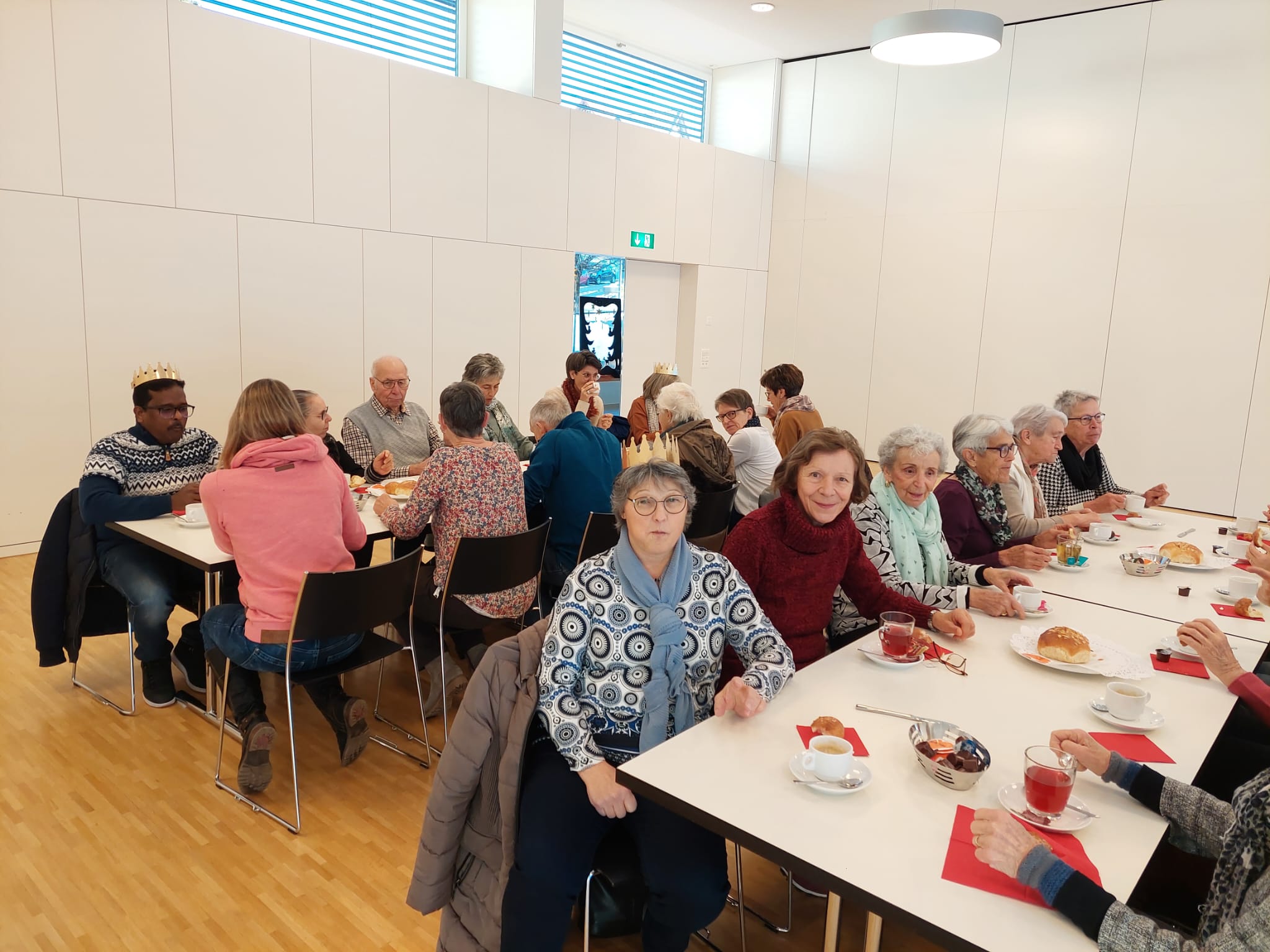 Gemeinsam stimmten wir uns in froher und besinnlicher Atmosphäre auf das neue Jahr ein. Um 9 Uhr begann der Gottesdienst, der von den Liturgiefrauen mit viel Engagement bereichert wurde. Im Anschluss trafen wir uns im Otmarzentrum zu einem gemütlichen Beisammensein bei Kaffee und dem traditionellen 3-Königs-Kuchen. Mit einem Lächeln durften Kaplan Jerry sowie drei Frauen die Krone aufsetzen. Es war ein schöner Morgen, um gemeinsam in das neue Jahr zu starten.