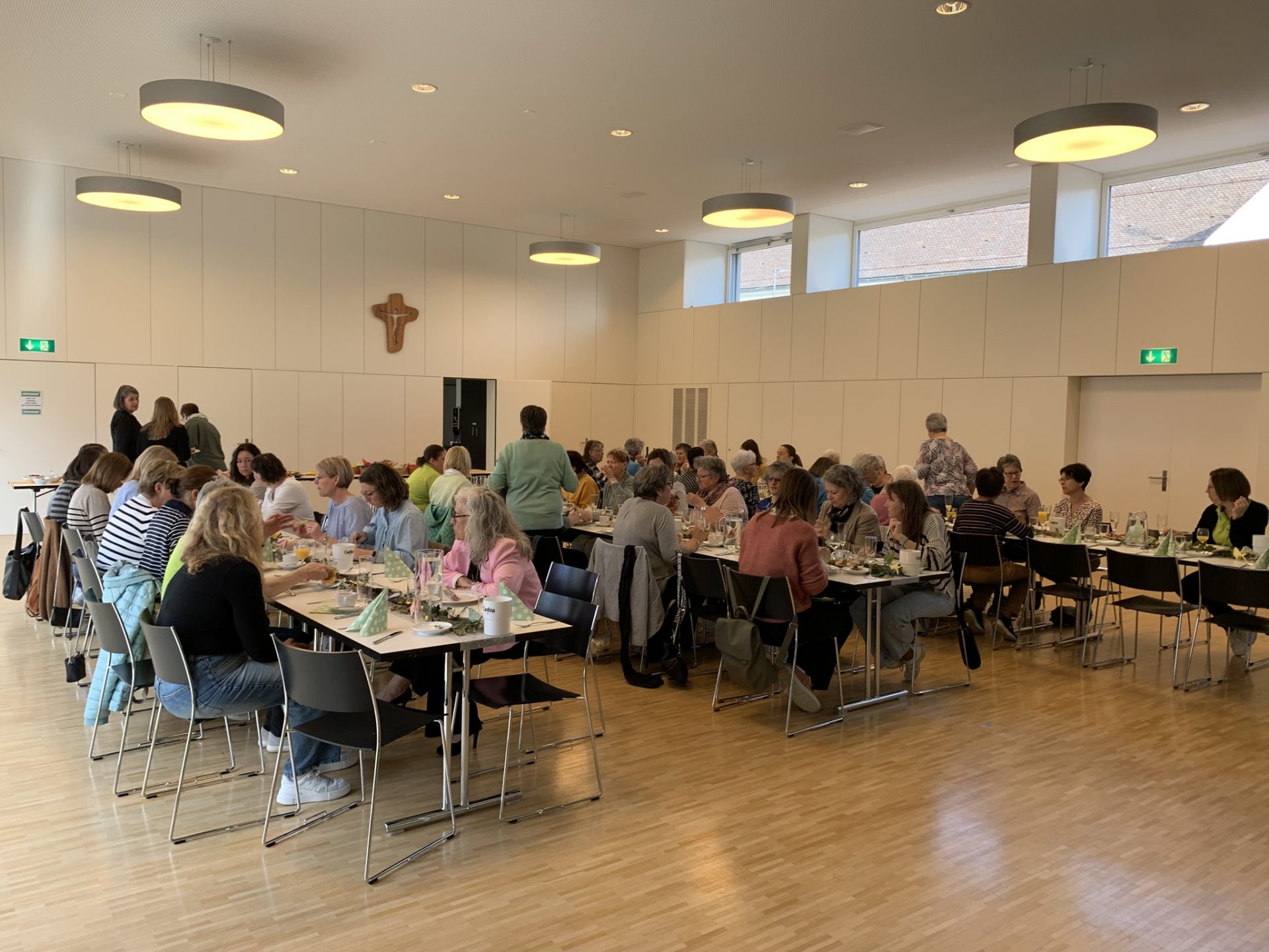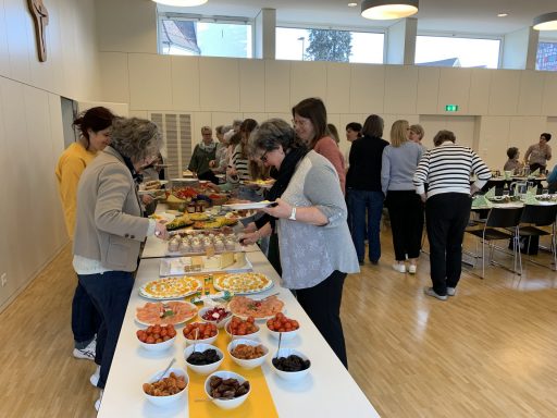 Das alljährliche Frauenfrühstück fand auch in diesem Jahr erneut grossen Anklang. Mehr als 50 Frauen kamen am Samstagmorgen im Otmarzentrum zusammen und genossen ein reichhaltiges Frühstücksbuffet. Anschliessend hielt Frau Madeleine Winterhalter von der Fachstelle Partnerschaft-Ehe-Familie vom Bistum St. Gallen ein inspirierendes Referat zum Thema „Toleranz unter den Generationen“. Sie gab zahlreiche praktische Impulse, wie theoretisch einfache Ansätze im Alltag umgesetzt werden können. Anhand von Fallbeispielen diskutierten die Teilnehmerinnen praxisnahe Lösungen, die alle Generationen einbeziehen und zu einem besseren Miteinander beitragen. Der Vormittag verging wie im Flug – und wir freuen uns bereits auf das nächste Jahr!