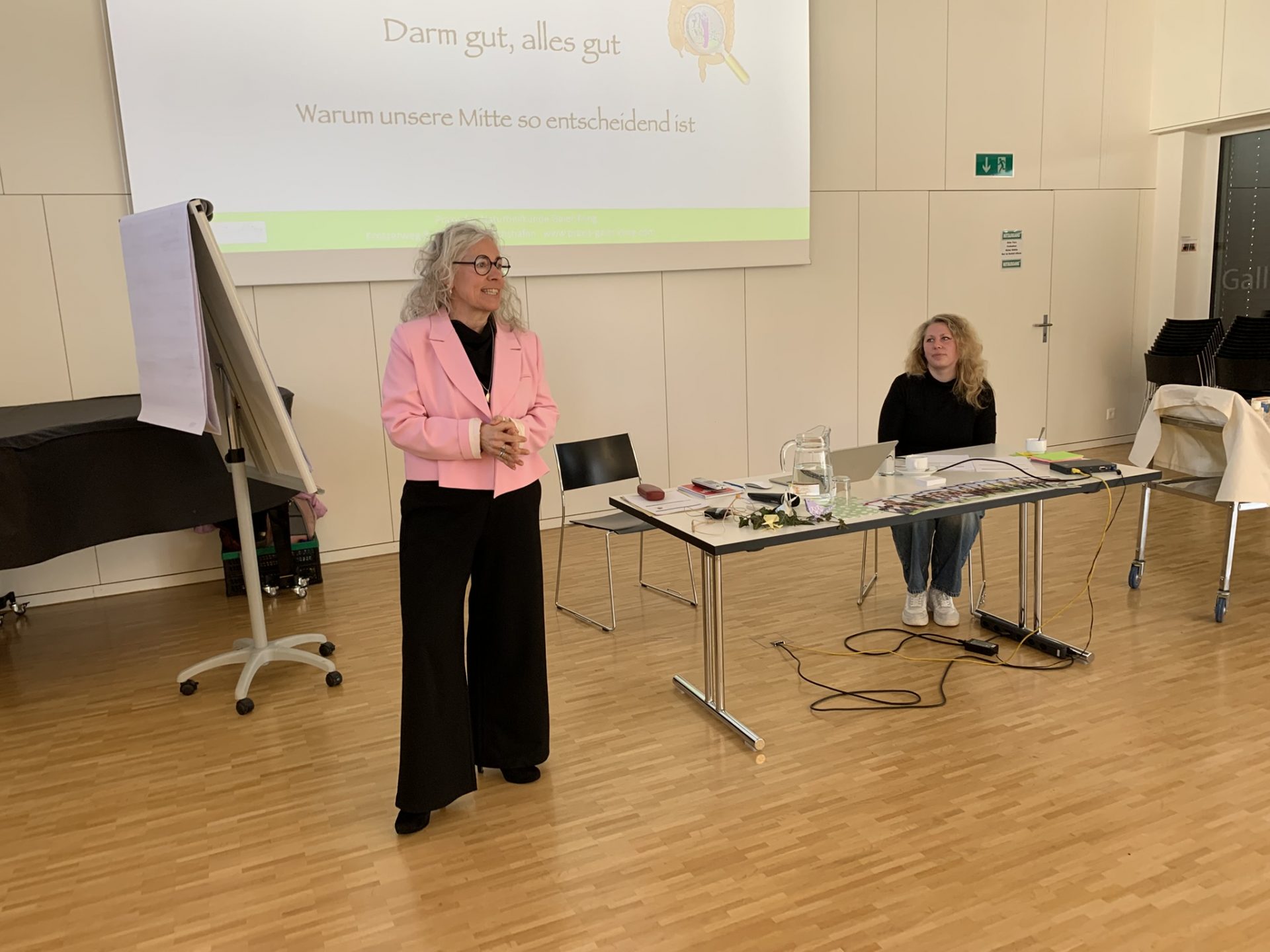 Im Anschluss begeisterte die Heilpraktikerin Cornelia Gaier-Kling mit ihrem Referat zum Thema „Darm gut – alles gut. Warum unsere Mitte so entscheidend ist.“ Dabei vermittelte sie anschaulich fundierte Fakten rund um die Verdauung und zeigte auf, wie eng Darm und Gehirn miteinander verbunden sind und ständig miteinander kommunizieren. Eine gesunde Darmflora beeinflusst das gesamte Wohlbefinden positiv und mit praxisnahen Tipps gab sie den Teilnehmerinnen wertvolle Impulse für mehr Balance und Gesundheit im täglichen Leben.