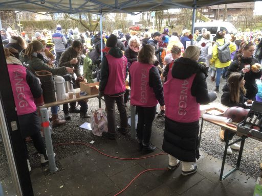Während dem Einrichten fragten wir Frauen der Fanegg uns noch, wer wohl bei dem Wetter alles kommen wird. Doch unsere kleinen Einwohner- und Einwohnerinnen waren perfekt auf das Wetter abgestimmt und so strahlten zahlreiche Kinderaugen mit ihren leuchtenden Räben und Laternen um die Wette. Familien aus Andwil und Arnegg erleuchteten mit Ihren Lichtern die Strassen bis zum Schulhausplatz. Mit einem wärmenden Punsch oder Glühwein und Wienerli sowie einem Schwatz unter Freunden wurde der Abend ausgeklungen.
