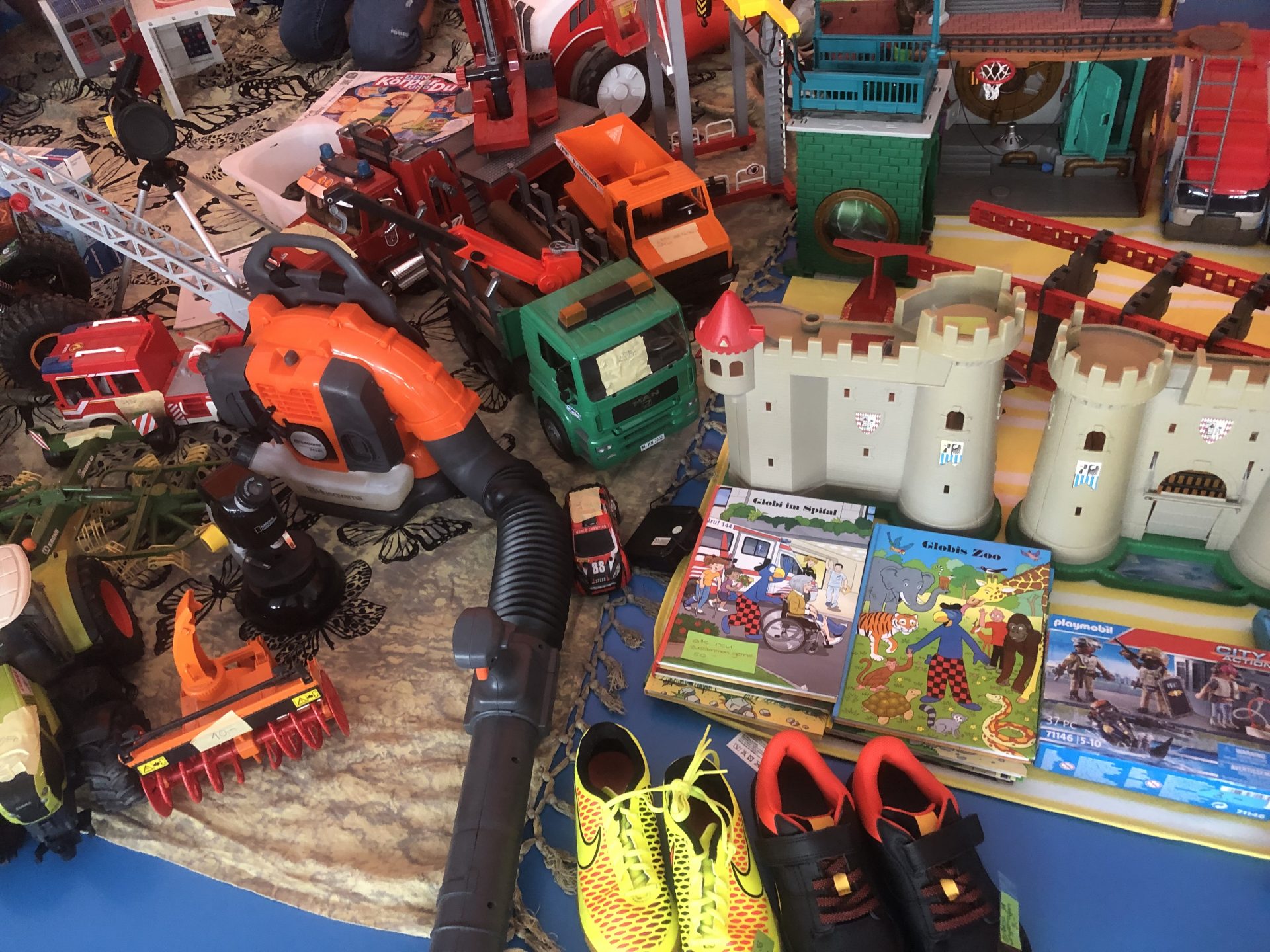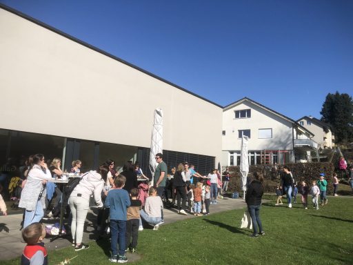 Wie in all den Jahren zuvor, konnte auch in diesem Jahr der Kinderflohmarkt bei bestem Wetter durchgeführt werden. Unzähliges Material wurde in Kisten oder Bollerwagen mitgebracht. Auf über 40 Plätzen wurden den grossen und kleinen Besucher/innen eine Vielzahl an Spielwaren, Bücher, Verkleidungen etc. zum Kauf angeboten. Es herrschte ein reges Treiben und manch nicht mehr Gebrauchtes wechselte den Besitzer. Zwischendurch konnte man sich mit Kuchen und diversen Getränken bei der Kaffeestube der Waldspielgruppe verpflegen. Am Schluss gab es nur glückliche Gesichter und einige gingen mit einem schönen Sackgeld in der Tasche und andere mit einem neuen Spielzeug unter dem Arm nach Hause.