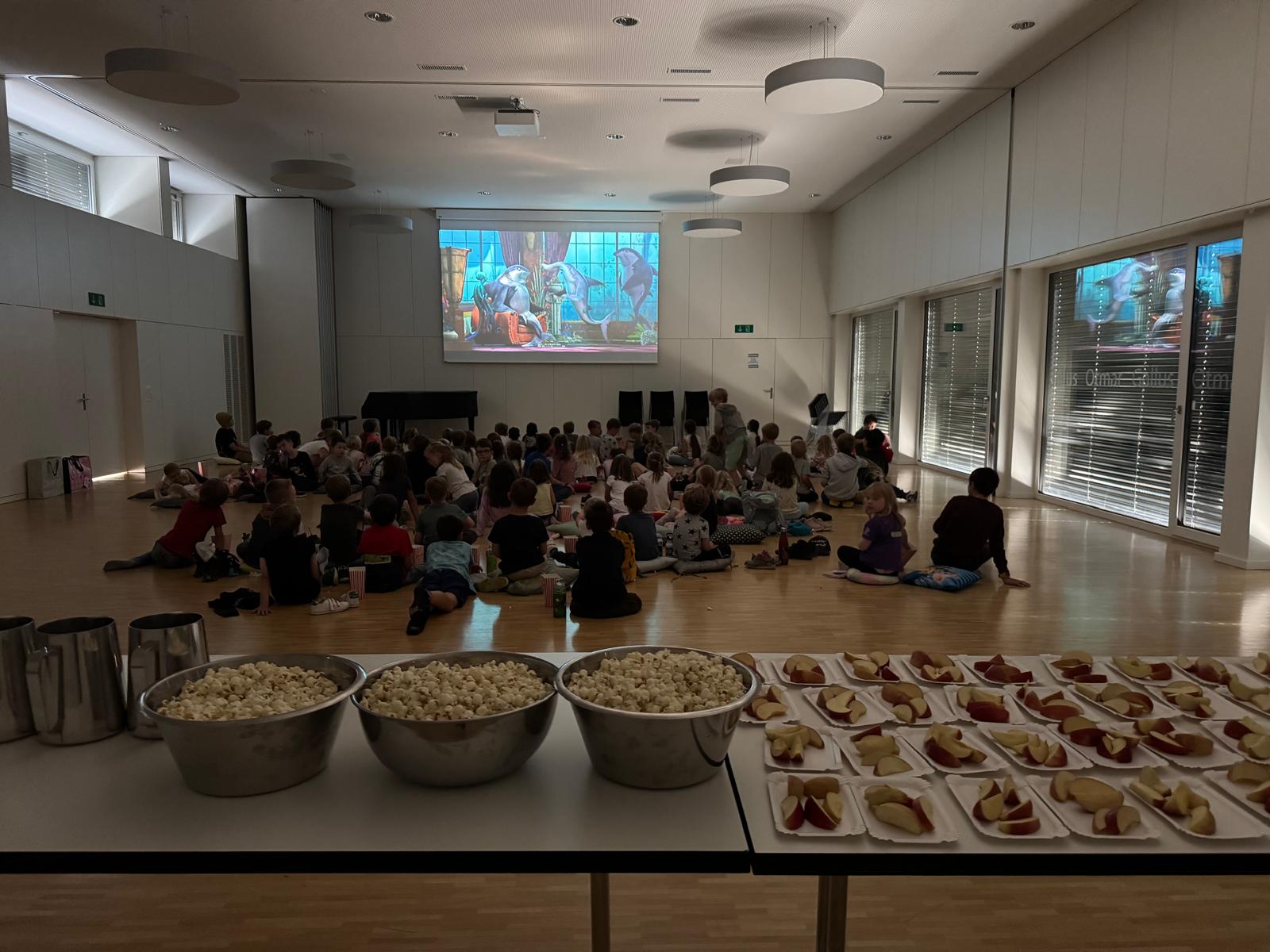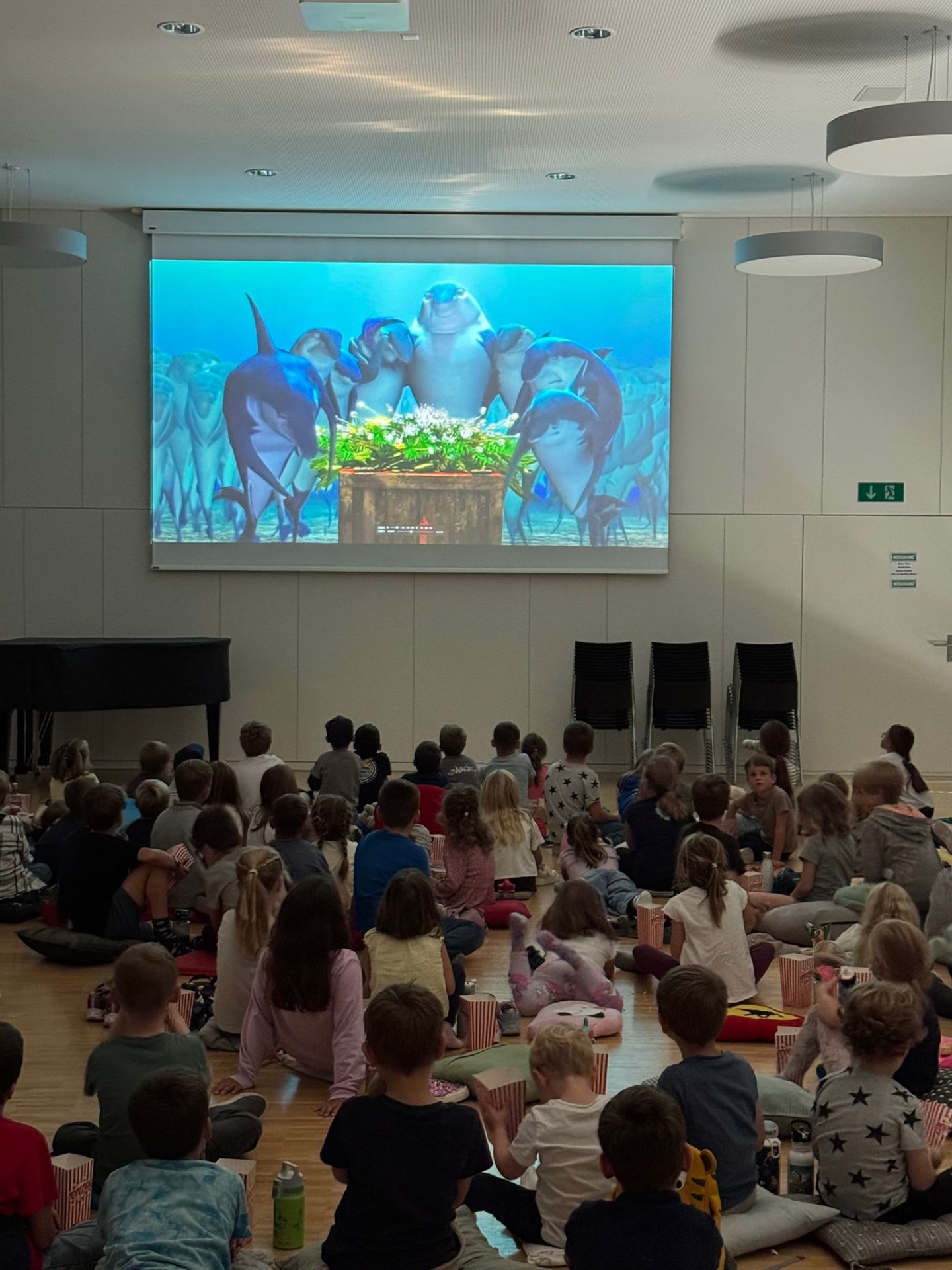 Was für ein tolles Erlebnis! 87 Kinder tauchten gemeinsam in die farbenfrohe Unterwasserwelt des Films „Grosse Haie – Kleine Fische“ ein. Mit viel Spass verfolgten sie die Geschichte von Oscar, dem kleinen, frechen Fisch, der plötzlich zum „Haihelden“ wird – und dabei lernt, dass Mut, Ehrlichkeit und wahre Freundschaft viel wichtiger sind als Ruhm und Glanz. Natürlich durfte beim Zuschauen das Knabbern nicht fehlen: Es wurde daher fleissig Popcorn gegessen, und für den gesunden Teil gab es frische, knackige Äpfel direkt vom Hofstadl Gossau. Am Ende lachten alle über die witzigen Szenen, fieberten mit den Meeresbewohnern mit und gingen mit einem Lächeln nach Hause.