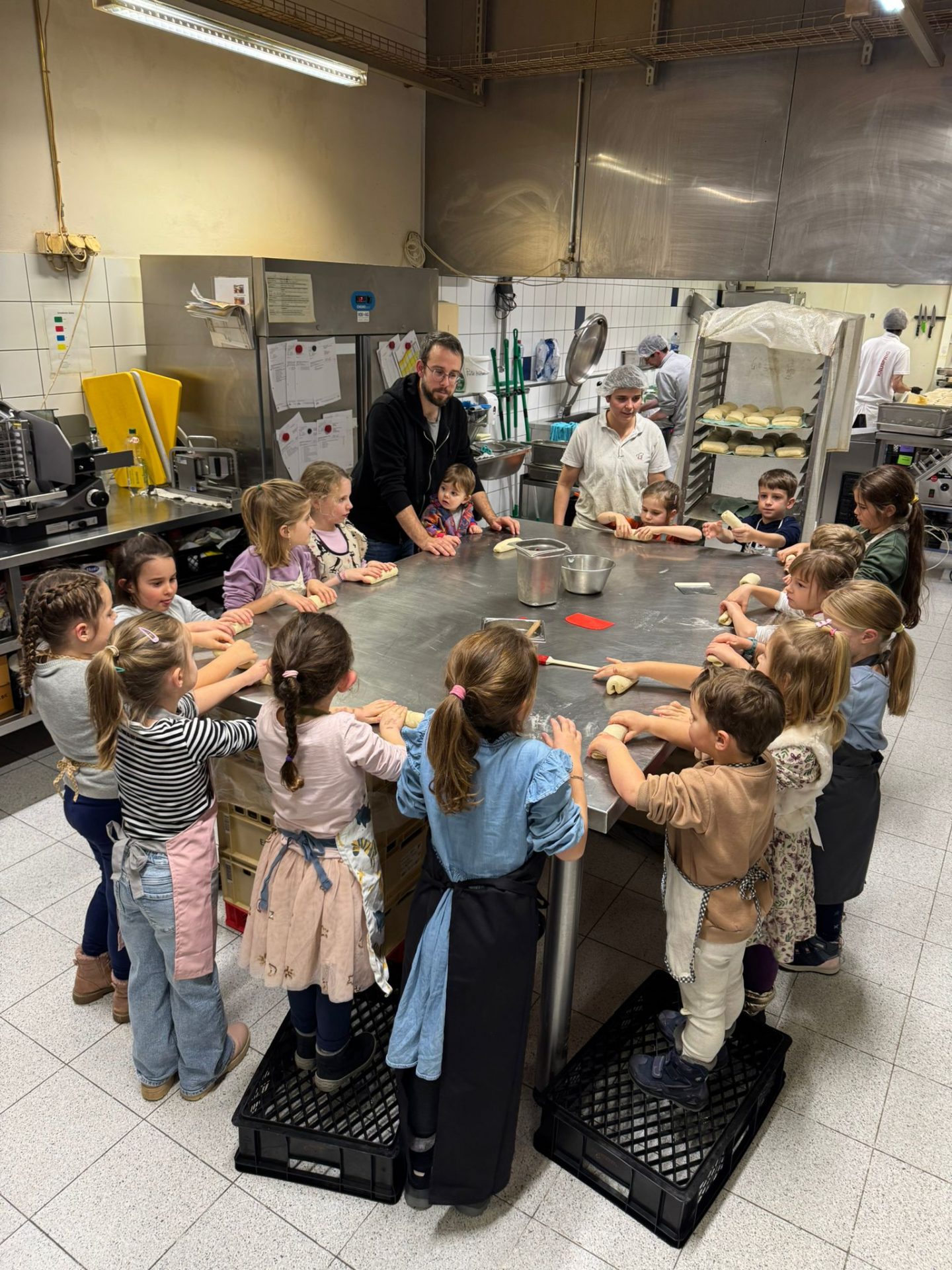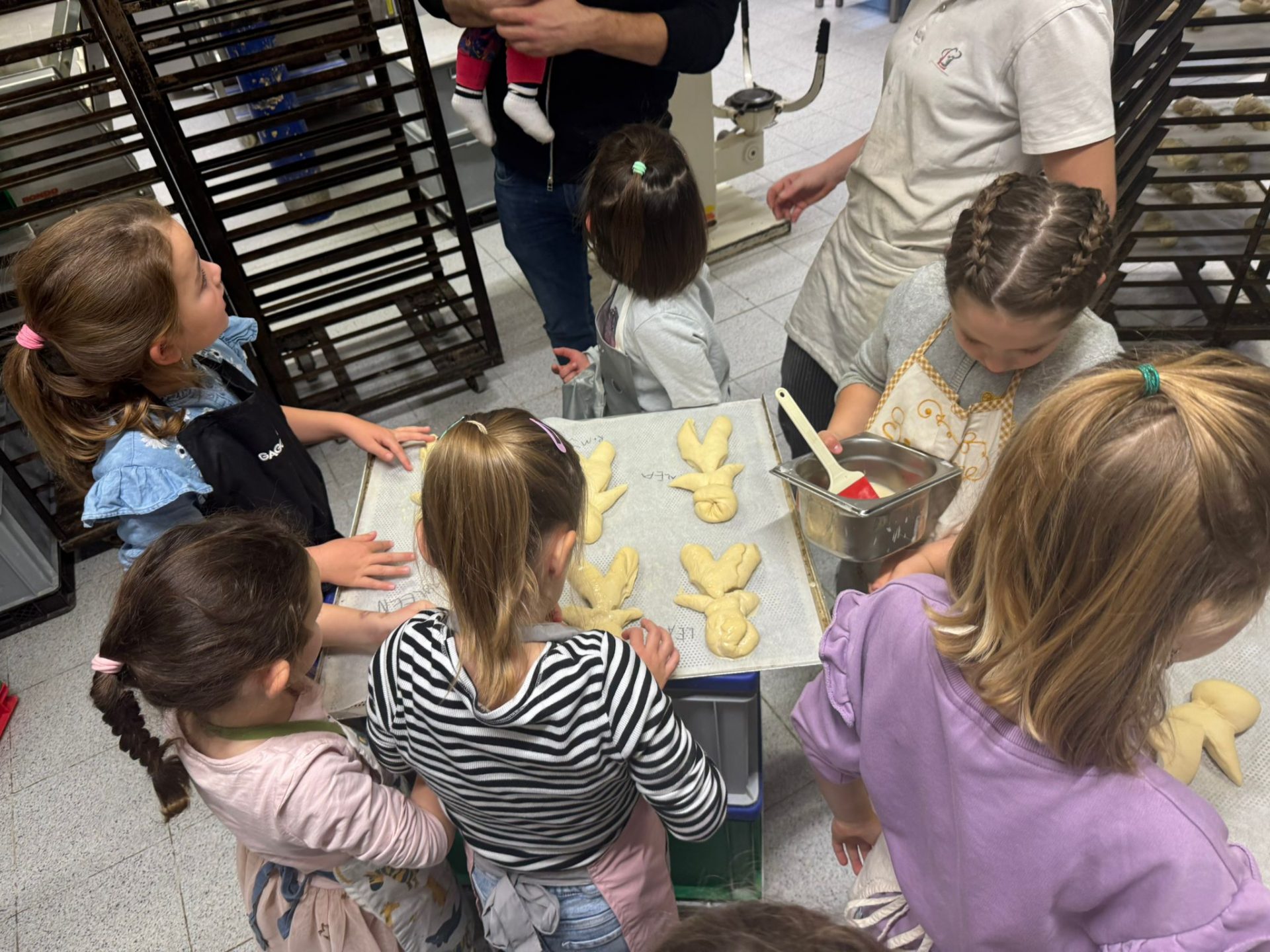 In der Weihnachtsbäckerei herrschte emsiges Treiben: 15 Kinder mischten, kneteten und formten mit viel Freude ihren eigenen Teig. Mit strahlenden Augen und voller Begeisterung entstanden ein duftender Zopf, ein fröhlicher Grittbänz und ein fantasievoller Schmetterling pro Kind. Danach wurden die Kunstwerke mit Mandeln, Rosinen und Hagelzucker liebevoll verziert – jedes Gebäck ein kleines Unikat. Am Ende waren alle stolz auf ihre leckeren Kreationen, die nicht nur wunderschön aussahen, sondern auch hervorragend schmeckten.